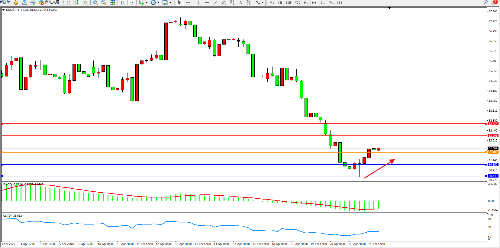 布油UKOil——4小时K线图显示: