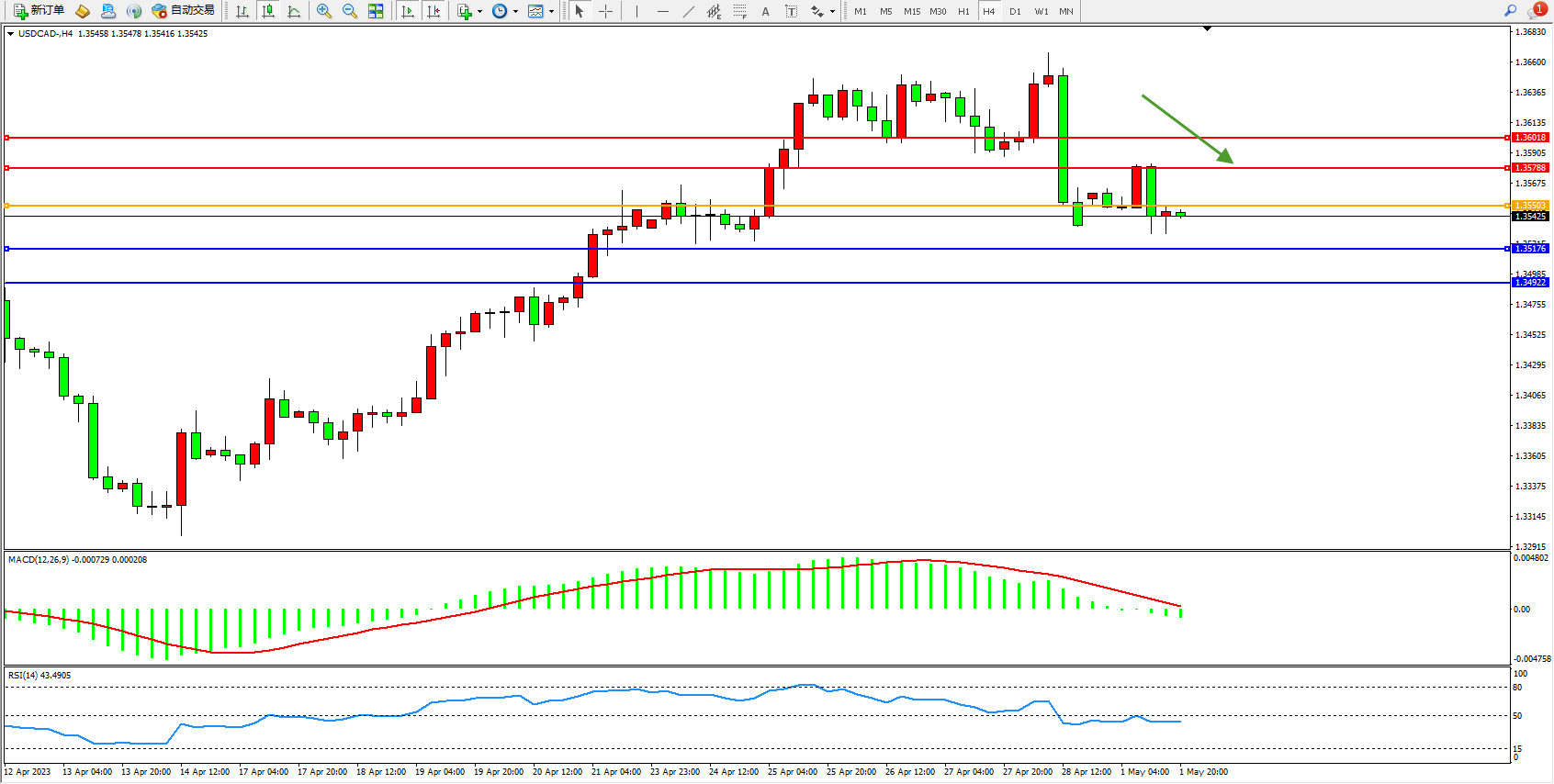 交易策略:1.35503下方看跌,目标1.35176 1.34922