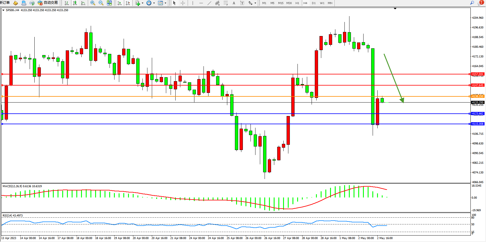 标普500指数5月2日(周二)收盘下跌48.60点,跌幅1.17%,报4119.27点;纽约证交所将立即暂停第一共和银行的股票交易,并将第一共和银行的8只证券摘牌。