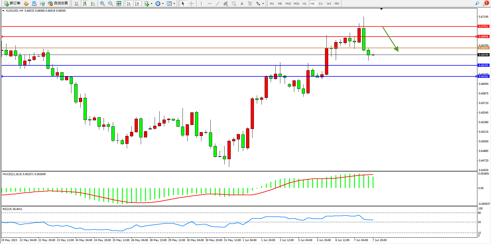 交易策略:0.66653下方看跌,目标0.66355  0.66162