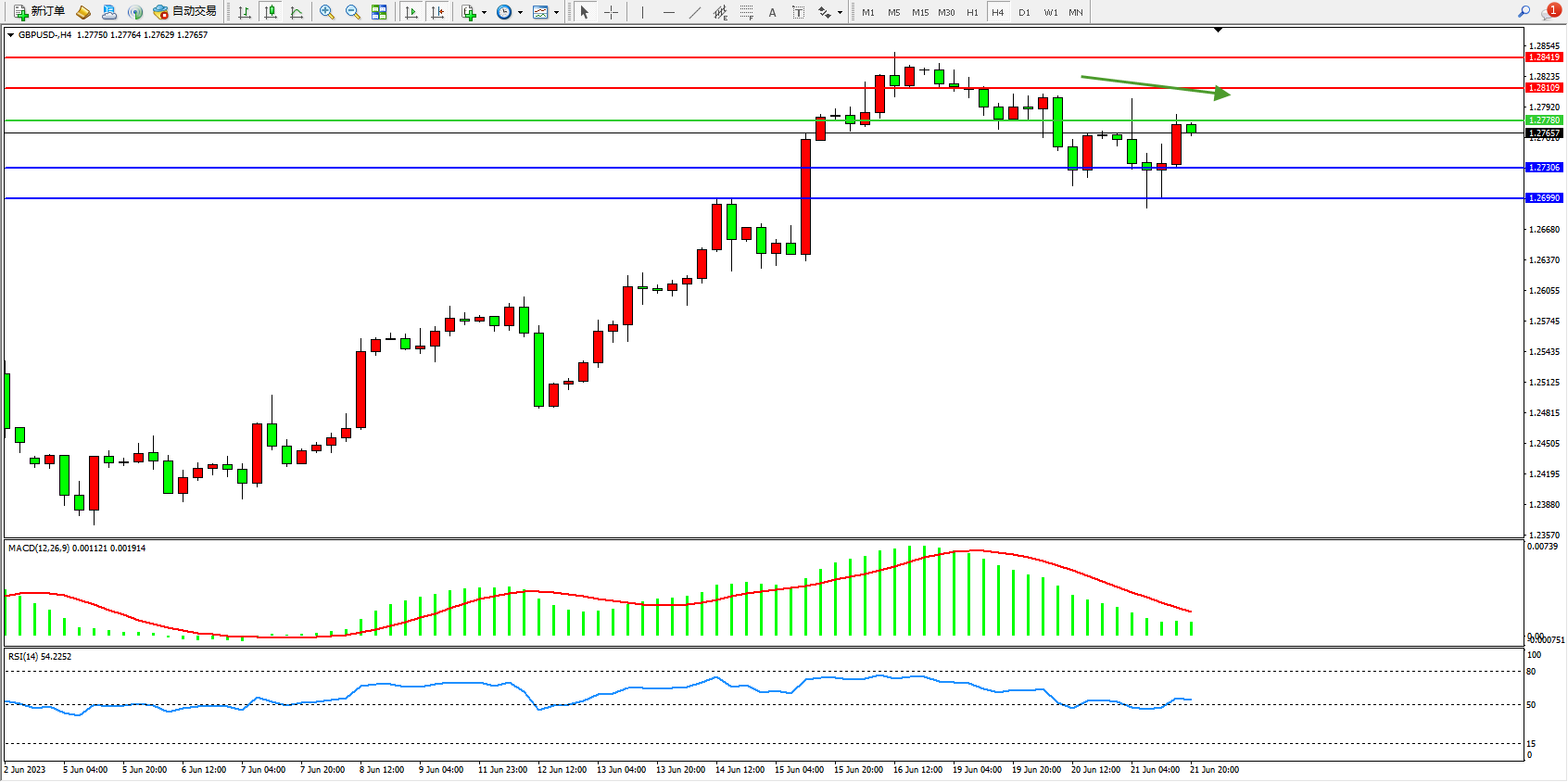 交易策略:1.27780下方看跌,目标1.27306  1.26990