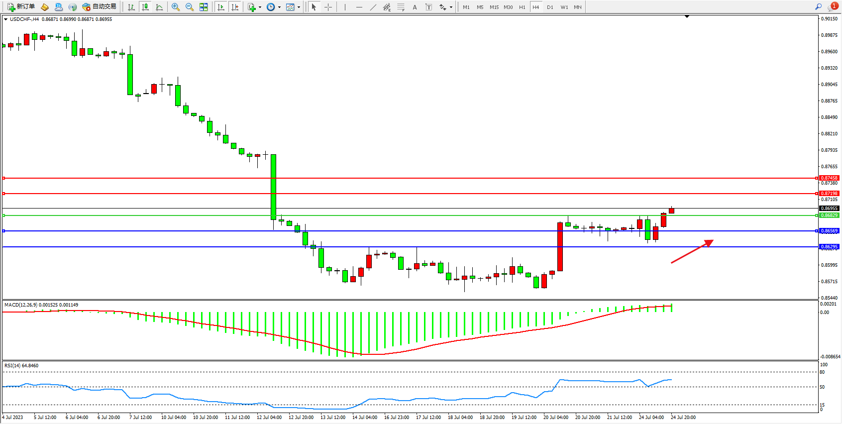 交易策略:0.86829上方看涨,目标0.87198 0.87458