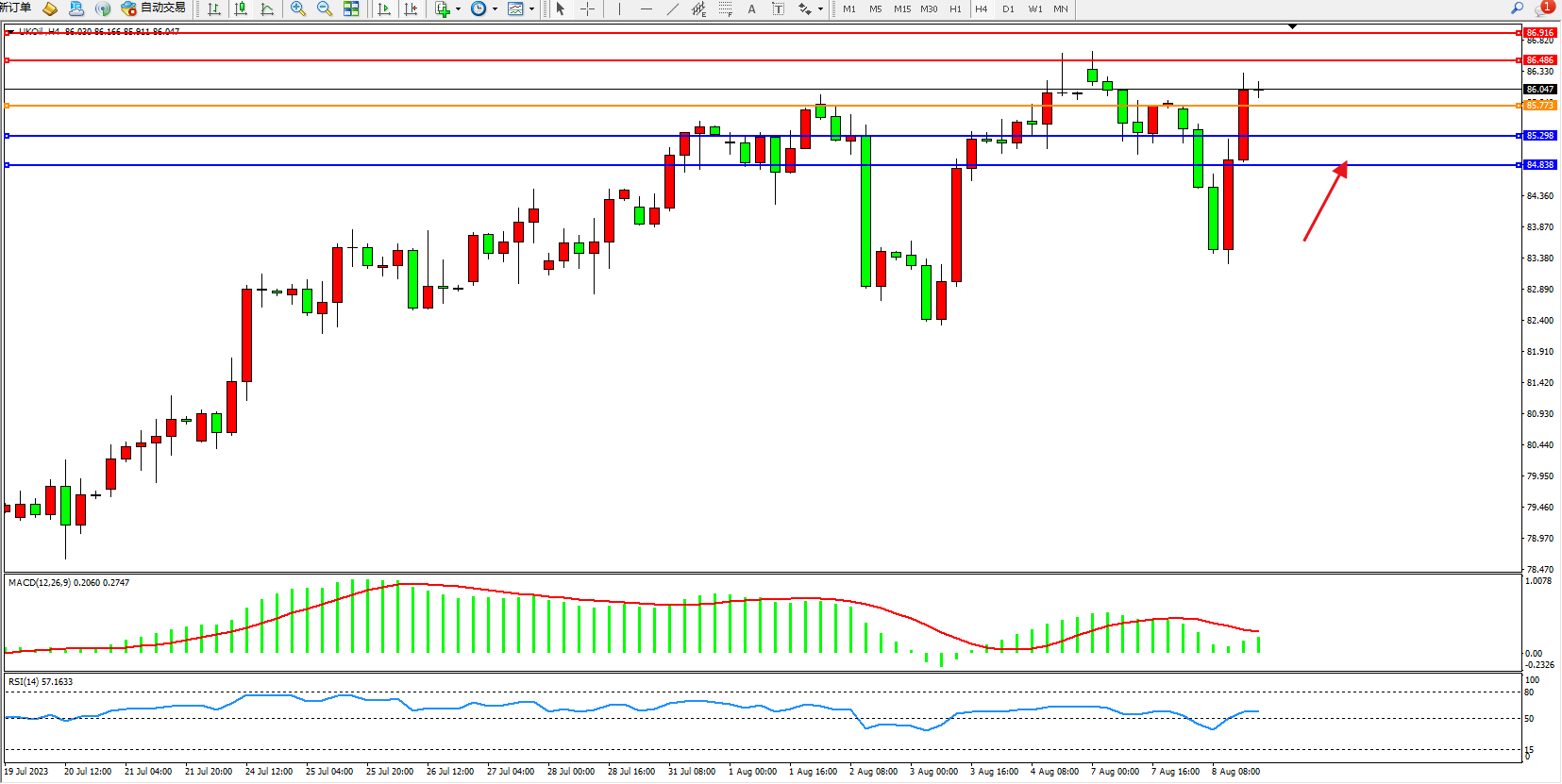 布油UKOil——4小时K线图显示: