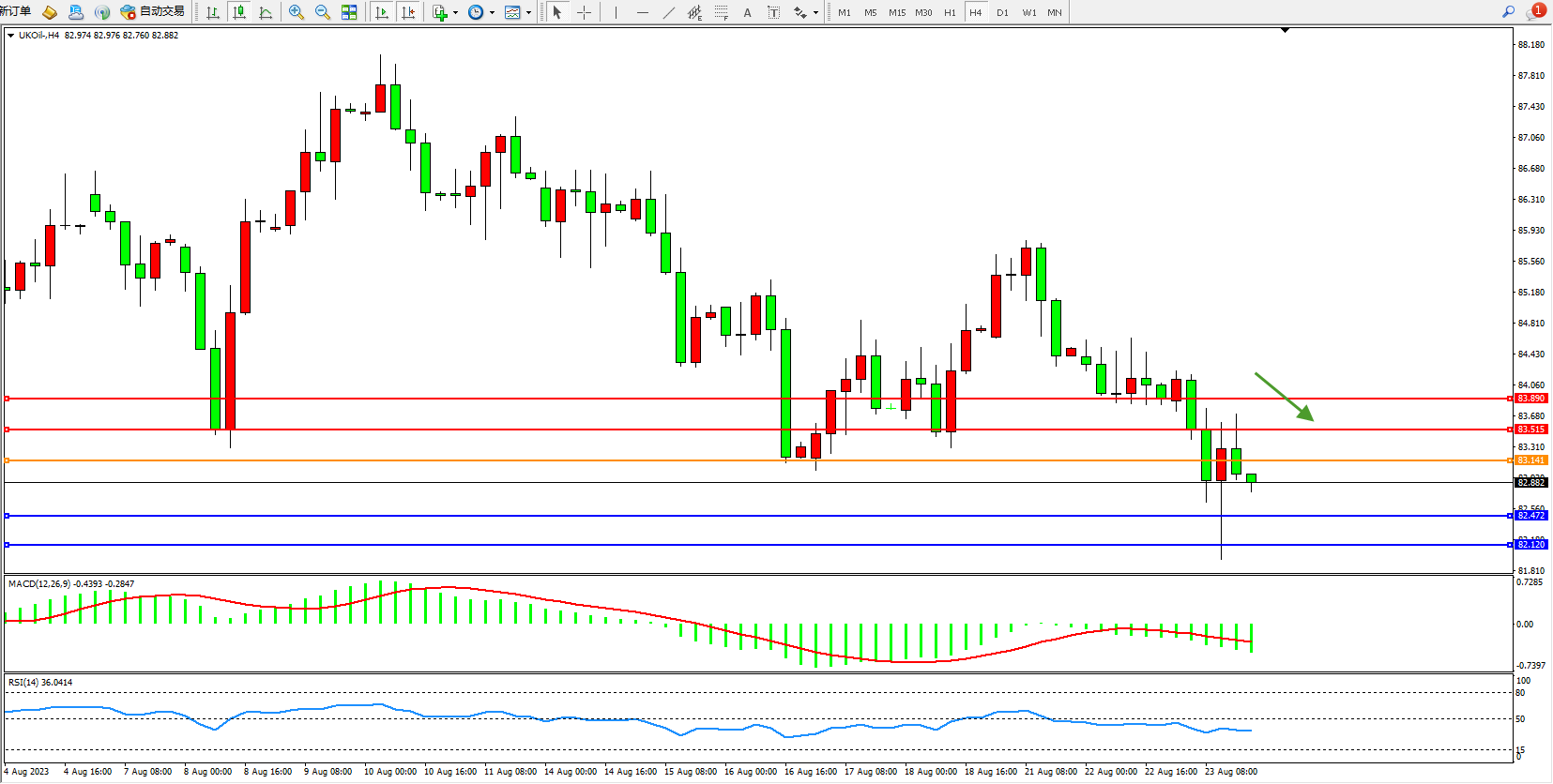 交易策略:83.141下方看跌,目标82.472  82.120