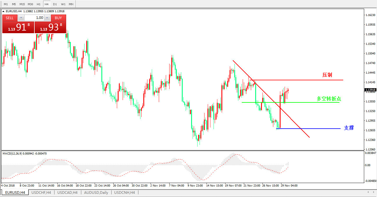 基本面简析:西班牙央行行长:欧元区经济放缓程度大于预期。美国经济数据喜忧参半,同时美联储公布11月会议纪要显示,美联储讨论了调整“进一步逐步”加息的措辞,认为有理由“相当近期”进行加息。