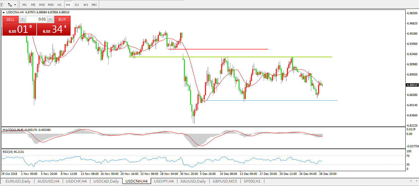 备选策略: 在6.9200之上,看涨,目标价位为6.9300,然后为6.9557。