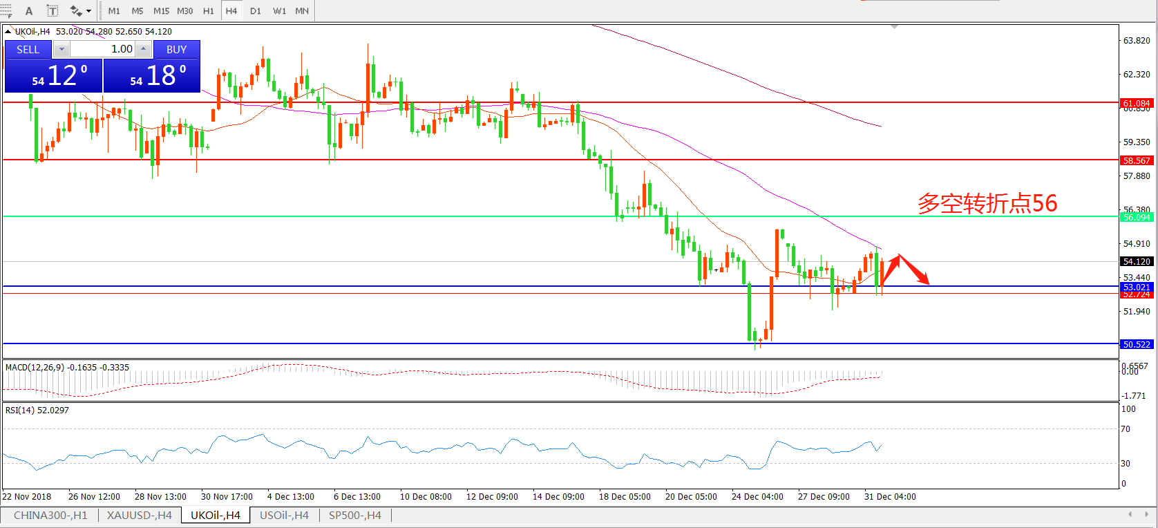 交易策略:在56.00之下看跌,目标53.00   50.00