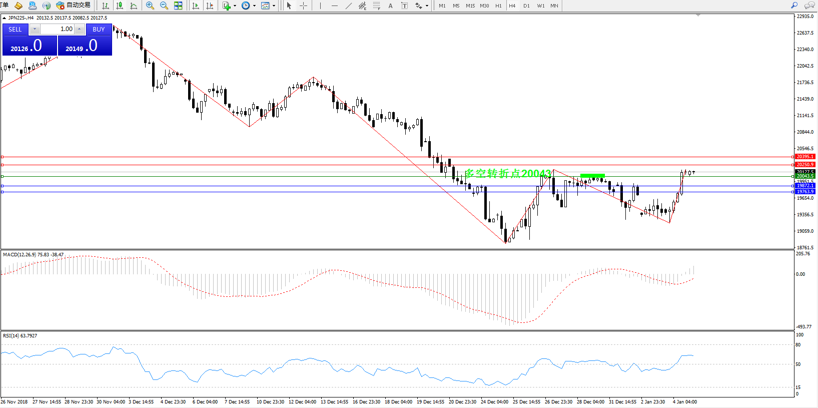 日经指数JPN225——4小时K线图: