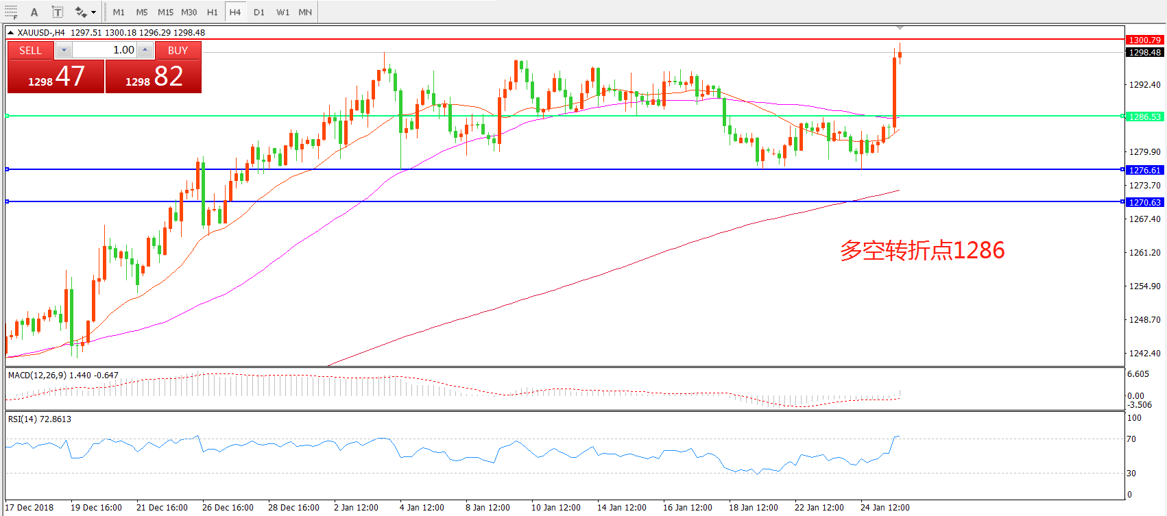 交易策略:在1286.00之上看涨,目标1300.00  1319.00