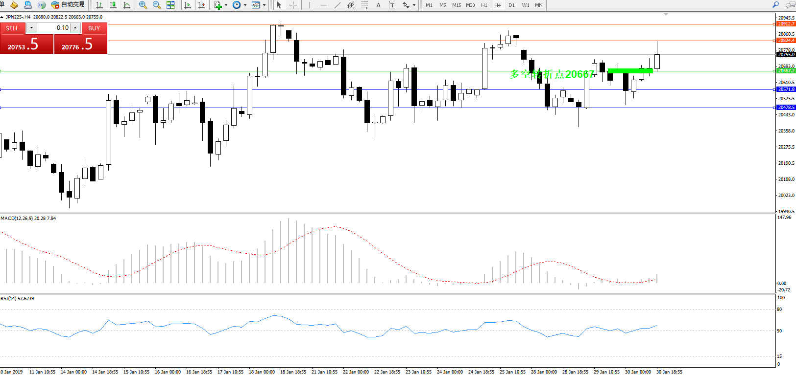 日经指数JPN225——4小时K线图: