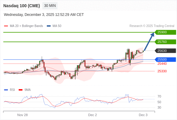 在 25500 之上,看涨,目标价位为 25760 ,然后为 25900 。