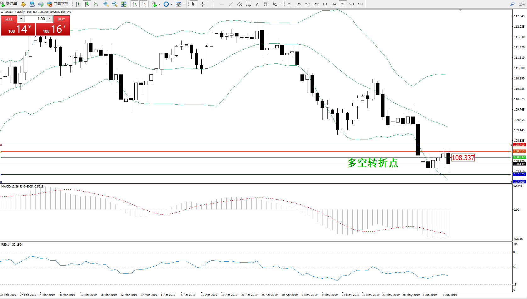 交易策略:108.337下方看跌,目标107.825107.600