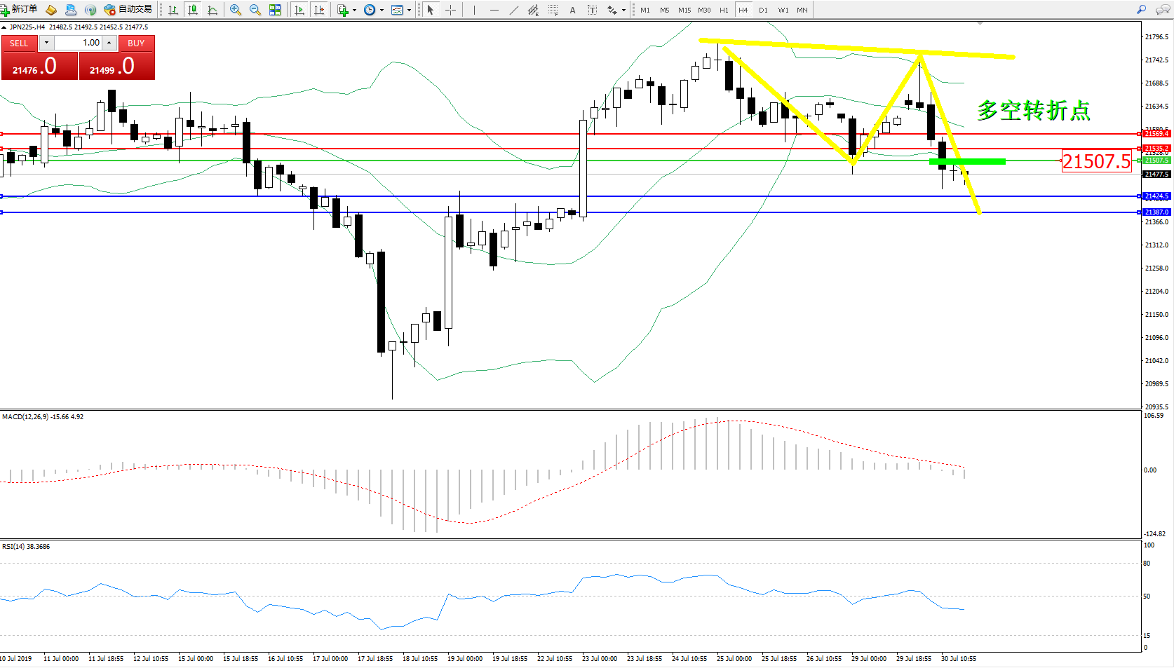 日经225指数7月30日(周二)收盘上涨99.75点,涨幅0.46%,报21678.50点。日本央行今日未推出更多宽松刺激措施,并维持其整体语言/沟通措辞不变,因此可以预期行长黑田东彦在稍后的新闻发布会上再次重申其一贯表态。由于日本央行“武器库”中没有多少“弹药”,所以认为其不会就日本央行可能采取的政策选择提供太多细节。
