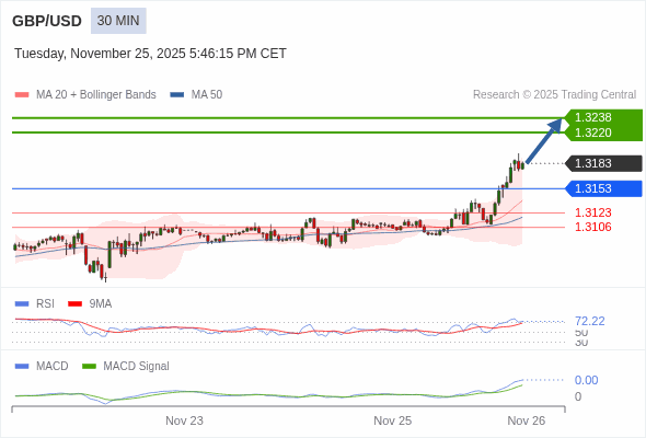 替代方案: 在1.3153以下,期待1.3123和1.3106。