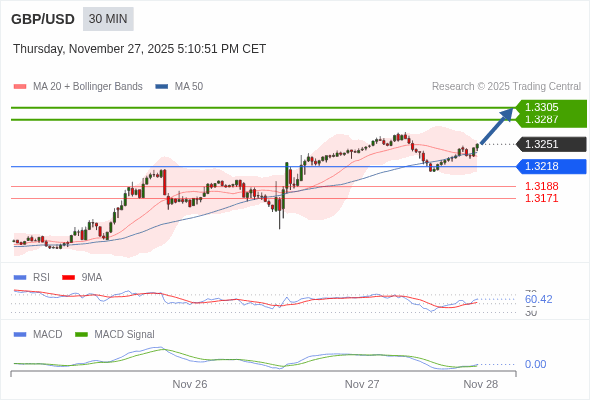 交易策略: 看涨,当 1.3218 为支撑位。