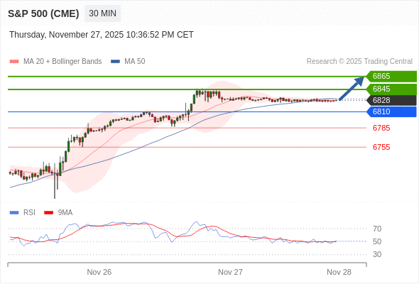 在 6810 之上,看涨,目标价位为 6845 ,然后为 6865 。