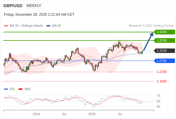 在 1.2700 之上,看涨,目标价位为 1.3790 ,然后为 1.4240 。