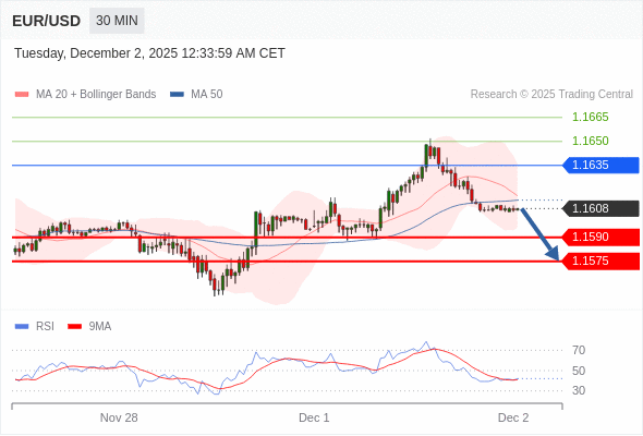交易策略: 在 1.1635 之下,看跌,目标价位为 1.1590 ,然后为 1.1575 。