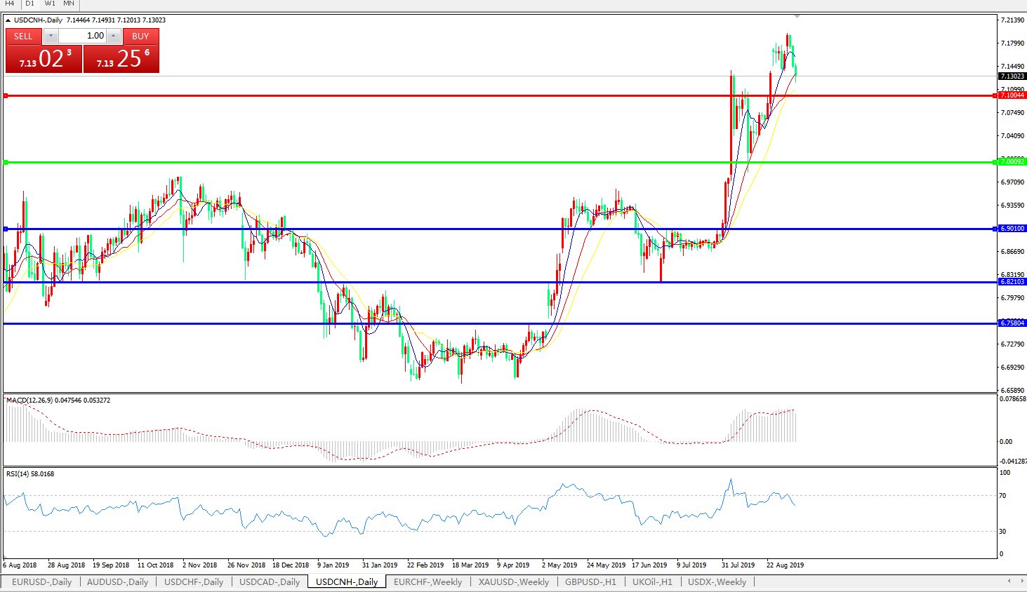 美元兑人民币USDCNH    日线图: