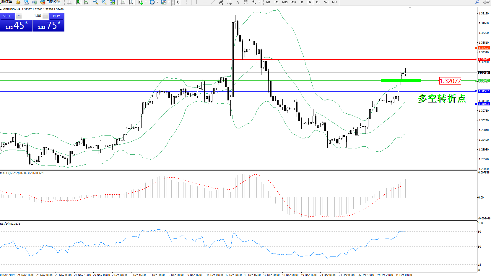 交易策略:1.32077上方看涨,目标1.33037、1.33557