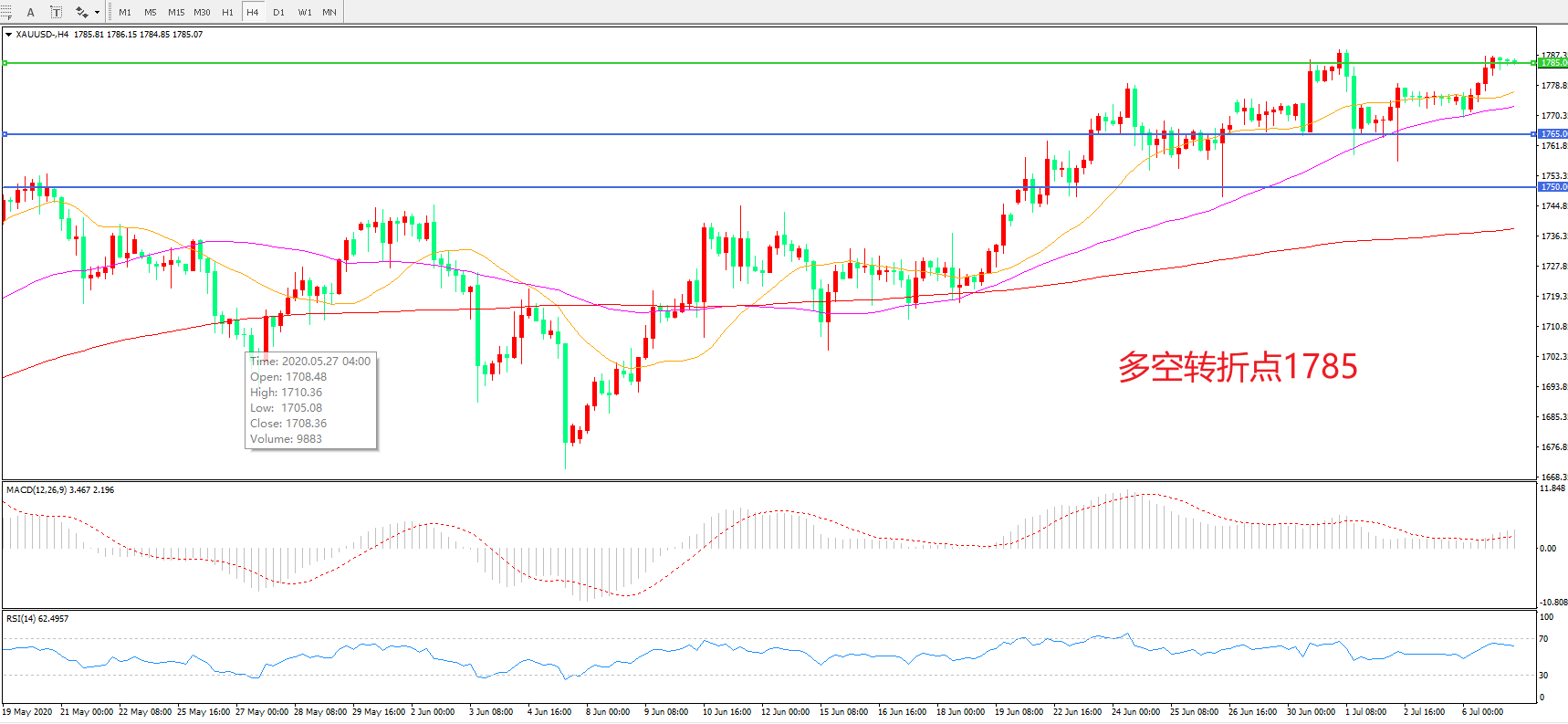 交易策略:在1785.00之上看涨,目标1800.00 1820.00