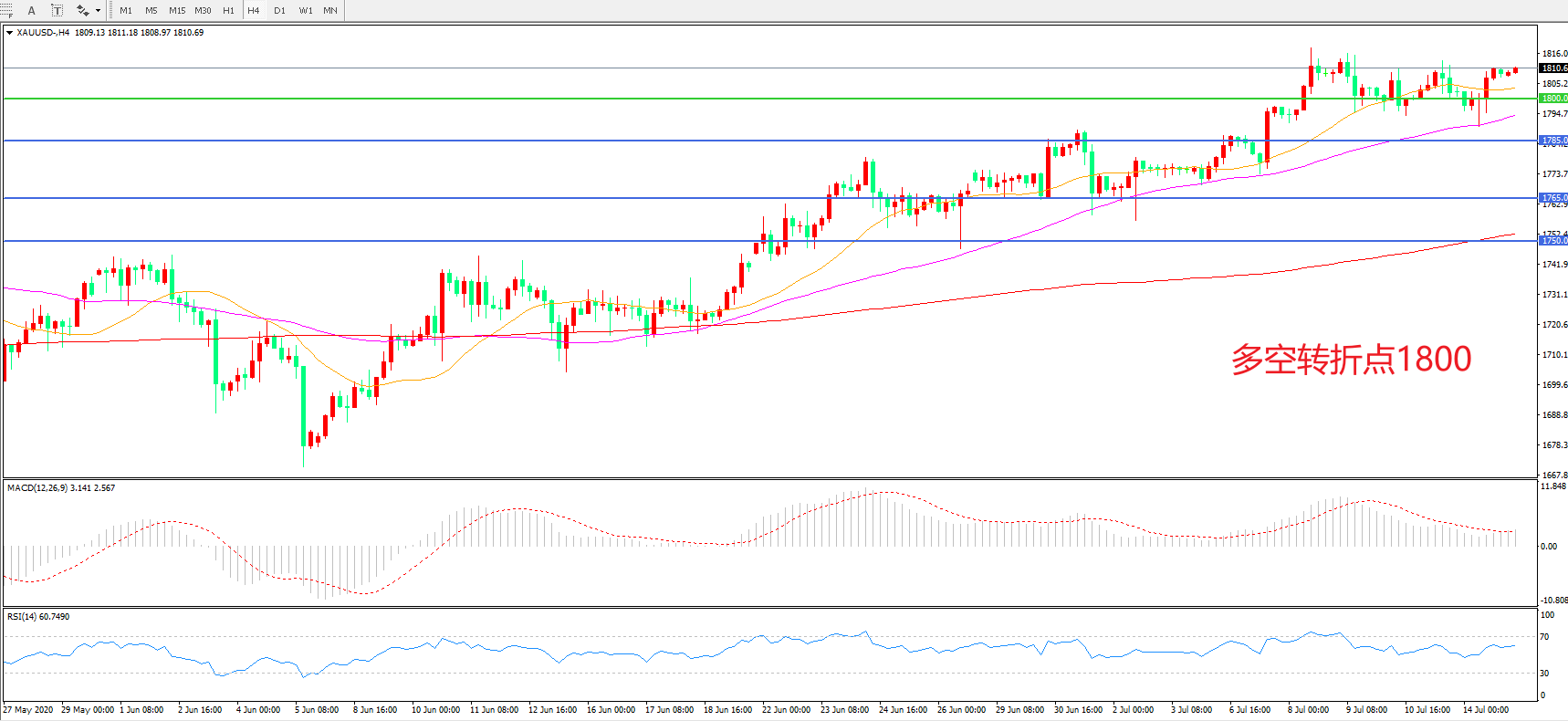 交易策略:在1800.00之上看涨,目标1820.00 1845.00
