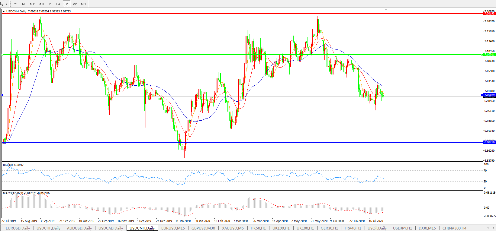 备选策略: 在7.1000之上,看涨,目标价位为7.2000,然后为7.3000。