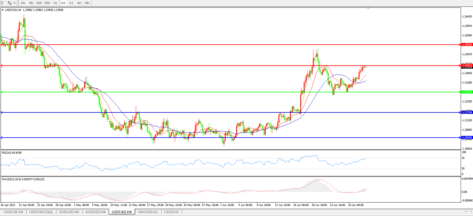 美元兑加元USDCAD    4小时图: