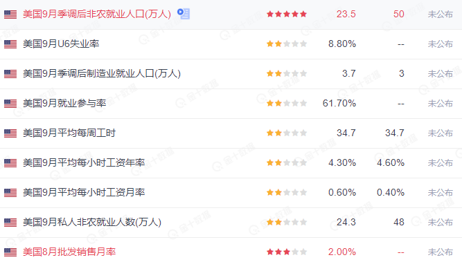 展望本周,最重要的数据将是美国9月份的就业报告,市场普遍预计将新增46万个就业岗位,失业率为5.1%。在本周早些时候提交国会的证词中,美联储主席鲍威尔表示,缩表的条件已几乎全部满足,而这样的预测在本周的非农数据中将予以确认。