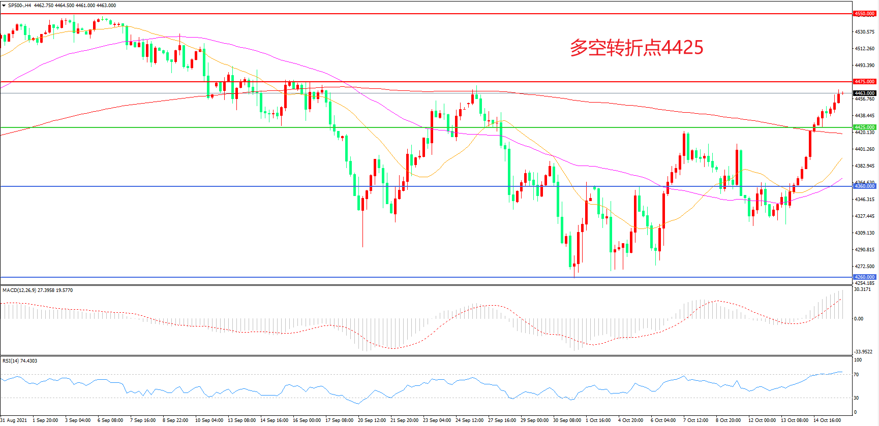 上周五(10月15日),美国9月零售销售明显优于预期,市场对经济前景更为乐观,标普500再度大涨,收报4457.25点。大型金融机构的业绩为三季度财报季迎来了良好开端。考虑到通胀高企和美联储减码渐进,投资者接下来仍将关注供应链中断和成本上涨对企业运营影响的迹象,这依然是引发市场波动的潜在风险。