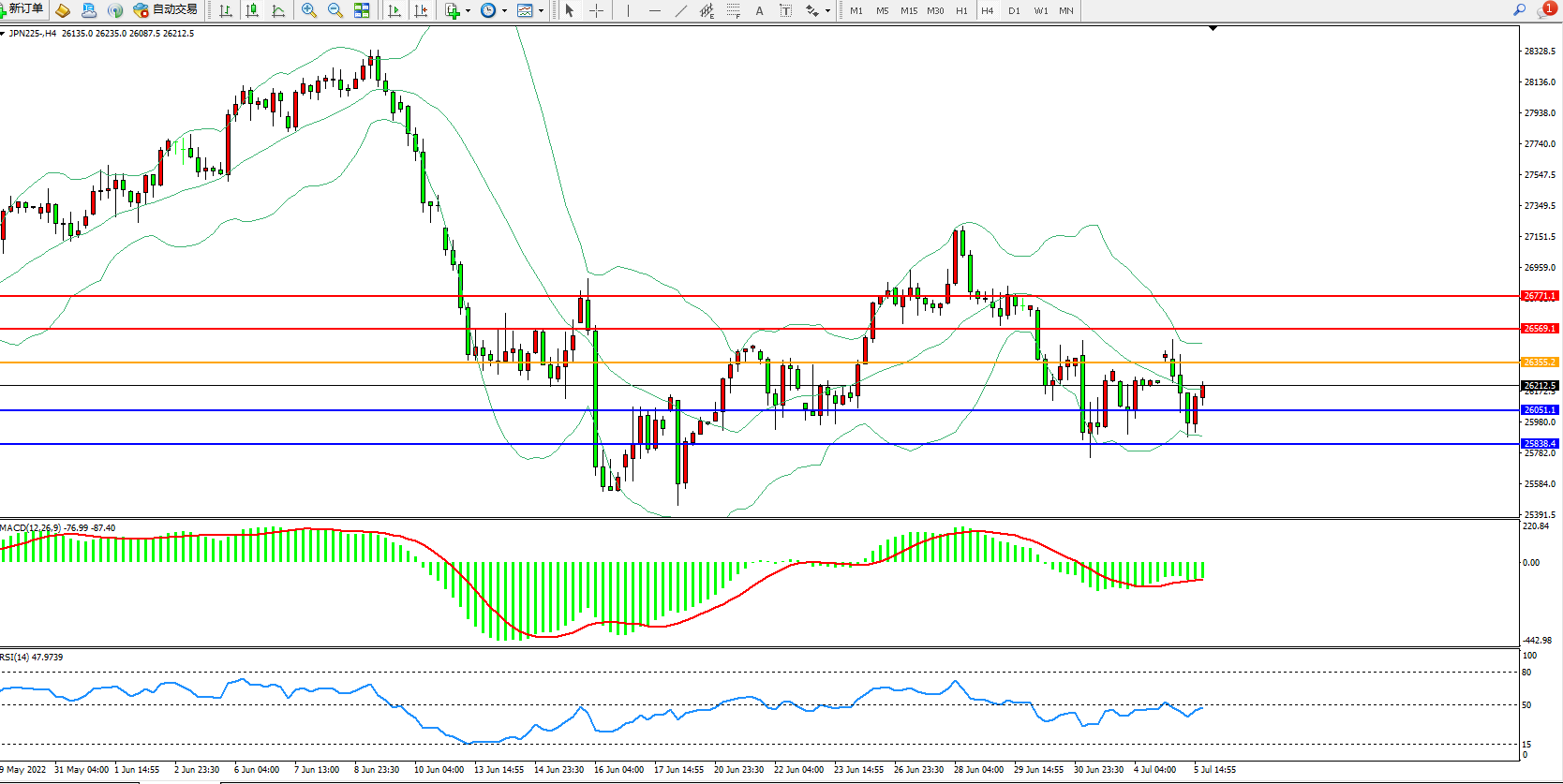 日经225指数7月5日(周二)收盘上涨264.69点,涨幅1.01%,报26418.50点。日本外务大臣林芳正将于本月7日访问印度尼西亚,并出席二十国集团(G20)外长会议。他还将在会议上阐述在当前俄乌局势背景下,日本在应对全球粮食危机等问题上的立场和倡议。