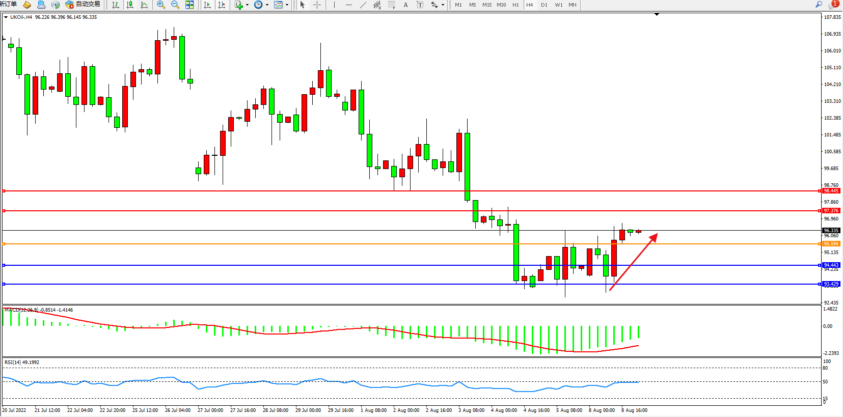 布油维持96.322附近震荡, 高盛表示预计布伦特价格将反弹至远高于远期市场水平,其第三季和第四季的预测现在为每桶110-125美元,而之前为每桶140-130美元。预计2023年布伦特原油价格为每桶125美元,与之前的预测一致。