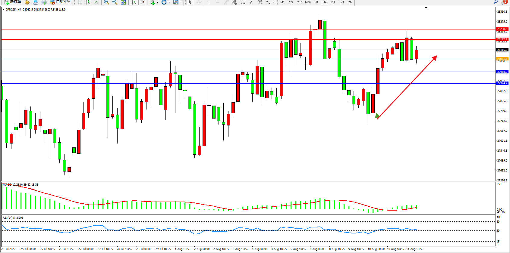 日经225指数8月10日(周三)收盘下跌182.46点,跌幅0.65%,报27817.50点。上一周(8月1日至7日)日本报告新增新冠病例数1496968例,占全世界新增病例数的约两成,连续3周成为单周新增新冠病例数最多的国家。