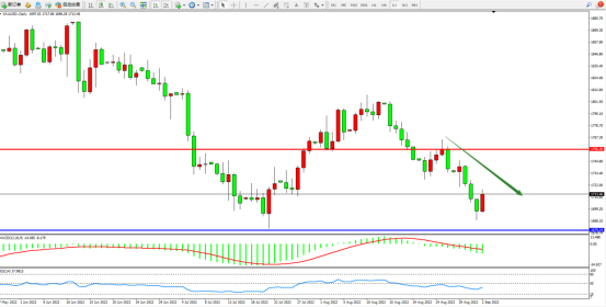 空头动力维持震荡下行,短期跌势未见最终止步,低位虽有短期回升,前期低位近在咫尺破位在即,上方压制关注1756附近,低位支撑关注1679附近,MACD指标处于空头区域整理,RSI指标处于空头区域维持弱势徘徊,如图: