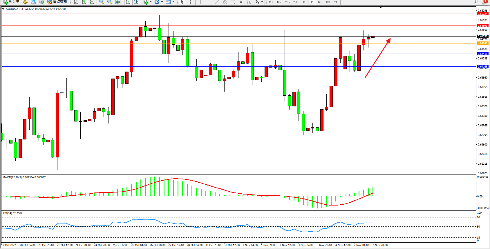 交易策略:0.64641上方看涨,目标0.64991、0.65224
