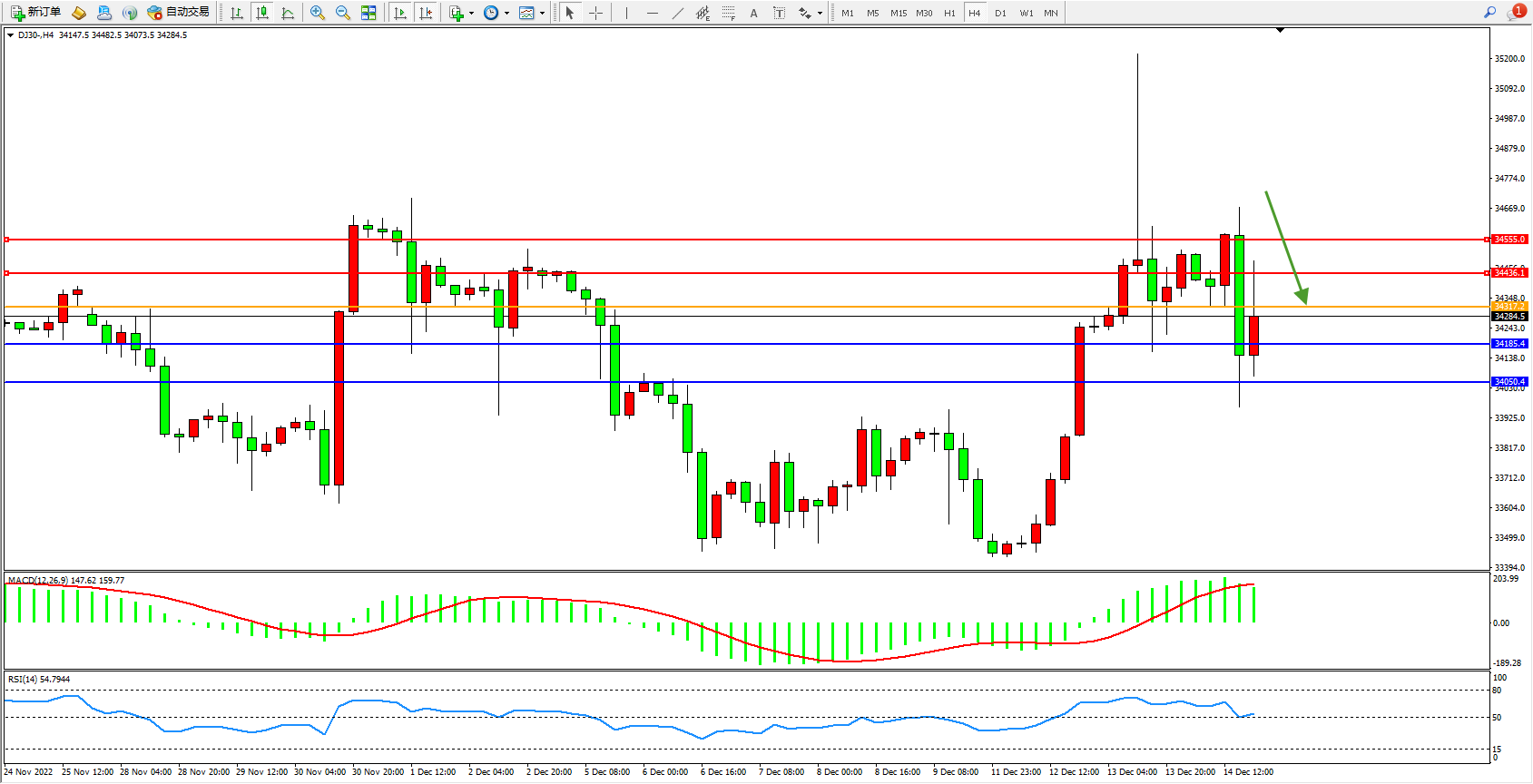 道琼斯指数12月14日(周三)收盘下跌142.95点,跌幅0.42%,报33965.69点;美联储如期加息50基点,至4.25-4.50%。2023年点阵图利率预测聚集在5%以上,只有两个点位低于这一水平,表明FOMC成员站在同一立场上。