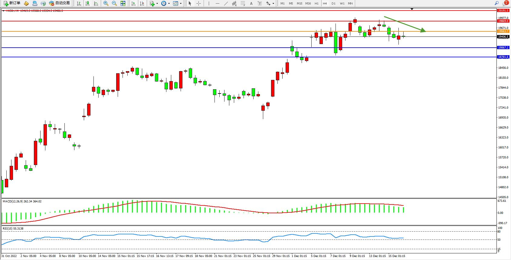 恒指HK50 4小时图