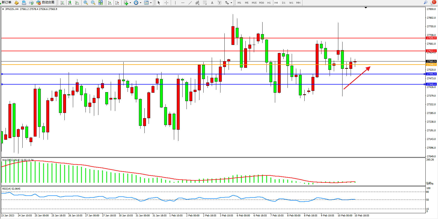 日经225指数2月10日(周五)收盘上涨77.65点,涨幅0.28%,报27662.00点。日本央行10日公布1月国内企业物价指数(2020年平均为100)初值,较上年同期上升9.5%至119.8。能源价格上涨导致的较大升幅仍在持续,企业价格转嫁造成家庭经济负担加重令人担忧。