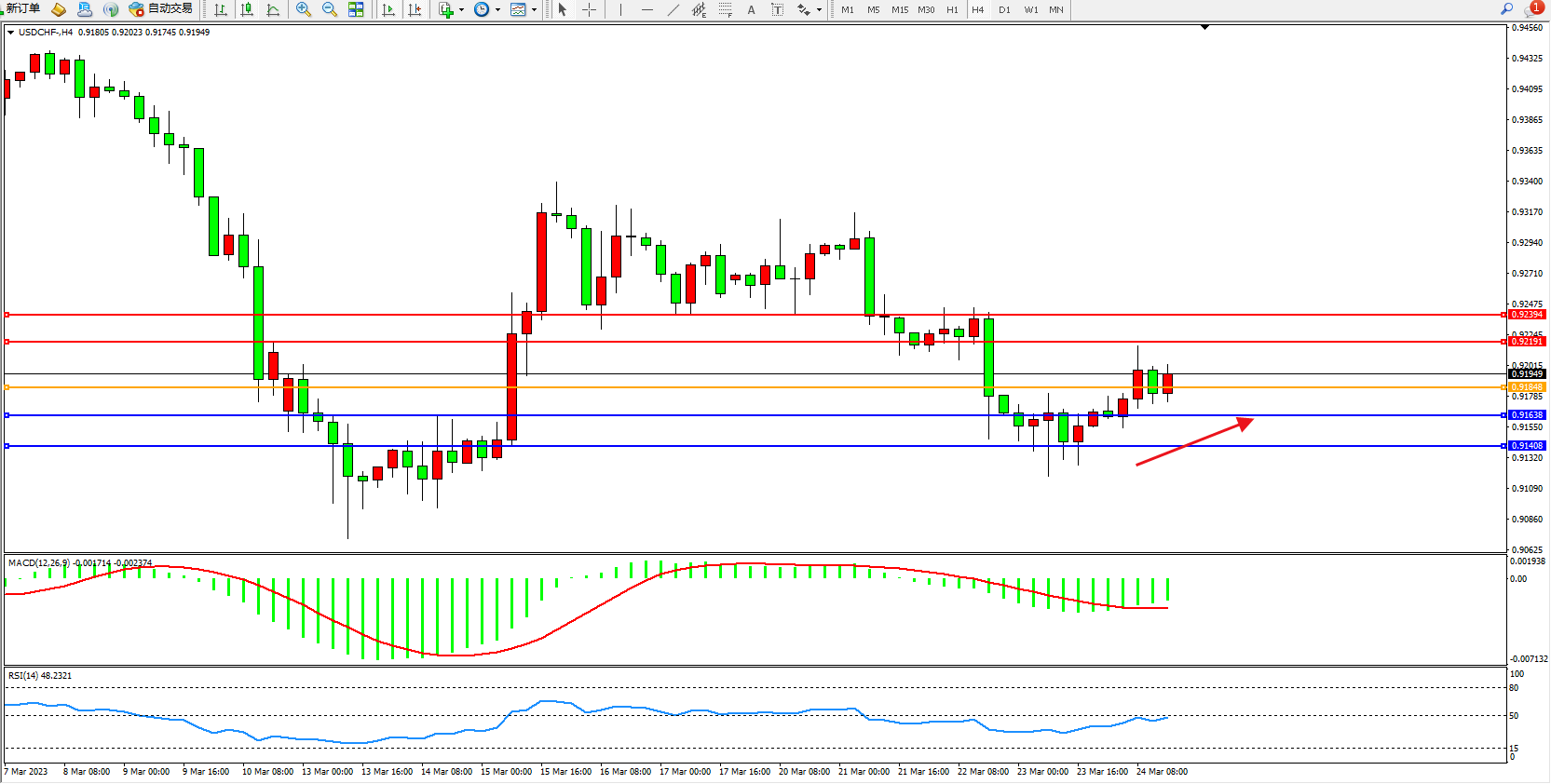 美元兑瑞郎维持0.91949附近震荡,瑞士信贷危机期间,瑞郎的表现并未匹配它响亮的避险货币名号,投资者纷纷转往其他避险资产。瑞士财政部3月13日宣布,监管当局正密切注意瑞士信贷情况,从那之后的一周时间内,瑞郎兑美元下跌0.9%。