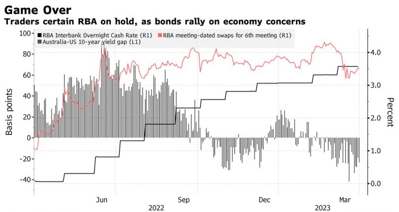 支持澳洲联储暂停加息的经济学家指出,2月份通胀放缓速度快于预期,消费者支出更加疲弱,以及对银行压力成为系统性压力的担忧。