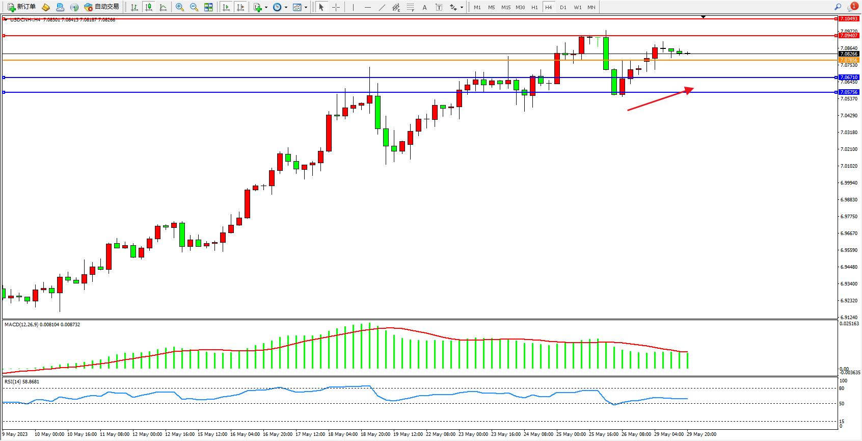 备选策略:7.07856下方看跌,目标7.06710  7.05756