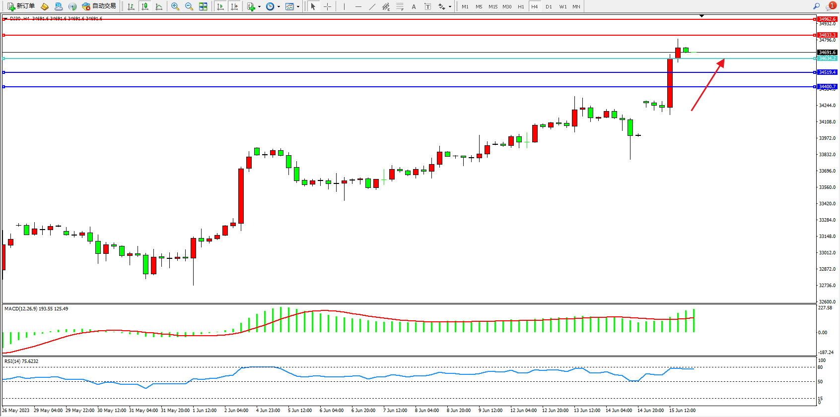道琼斯工业平均指数收涨428.73点,涨幅1.26%,报34408.06点。初请失业金人数经季节调整后为26.2万人,与前一周持平。初请失业金人数强于预期,部分原因是明尼苏达州最近的政策变化,使得非教学教育人员有资格在暑假期间领取州失业救济金。