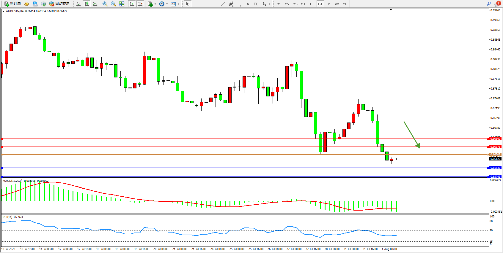 交易策略:0.66208下方看跌,目标0.65930  0.65743