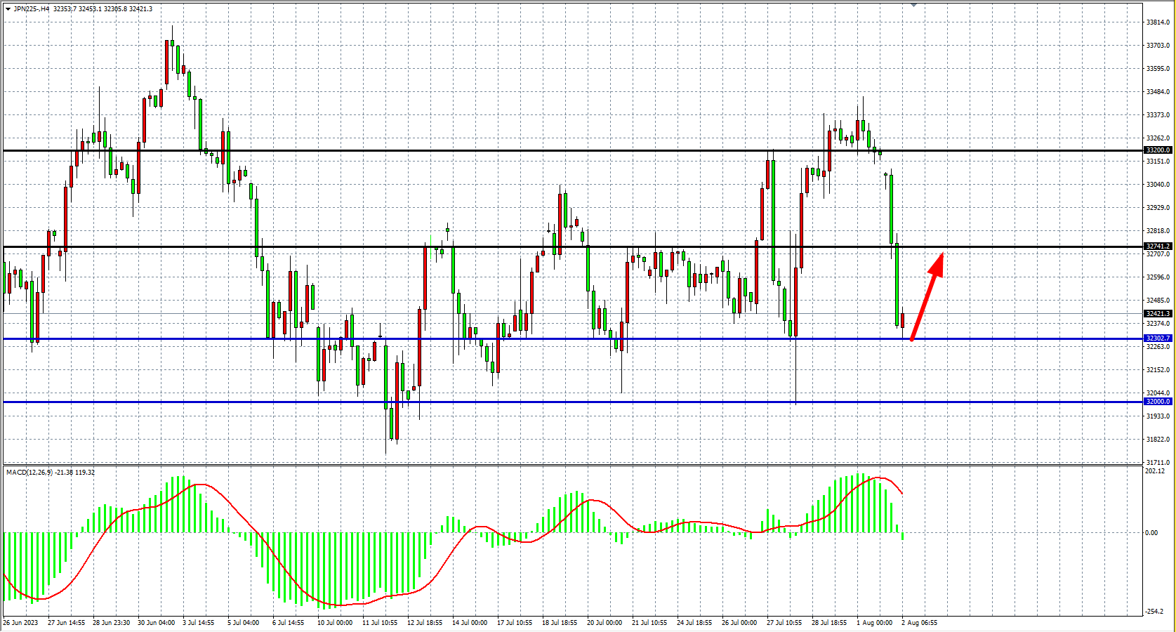 JPN225四小时图