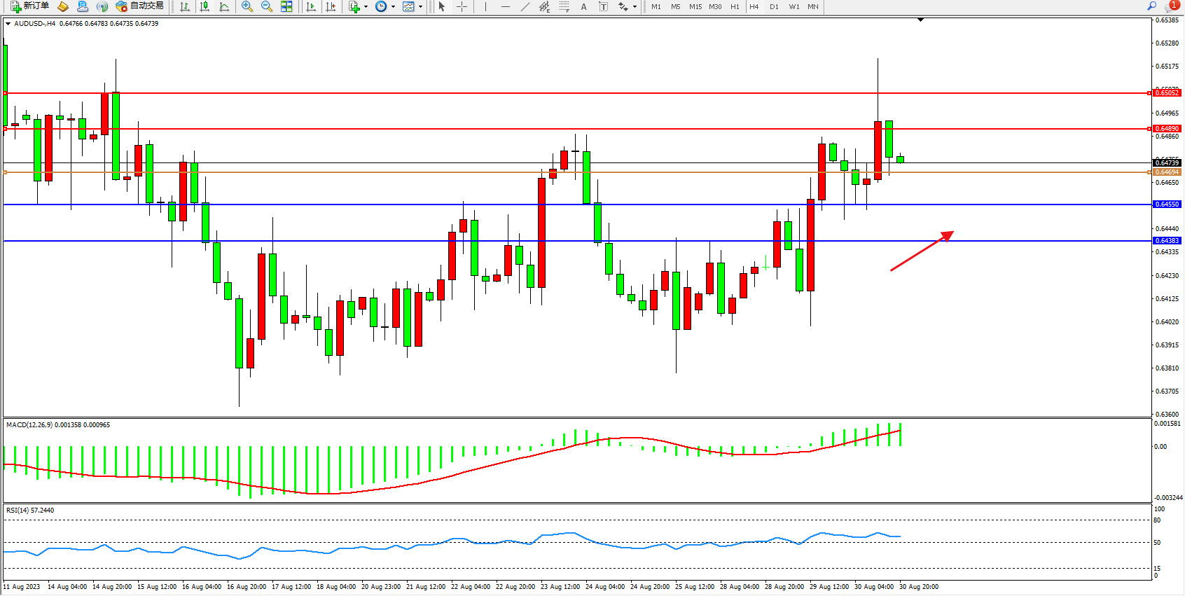 交易策略:0.64694上方看涨,目标0.64890  0.65052