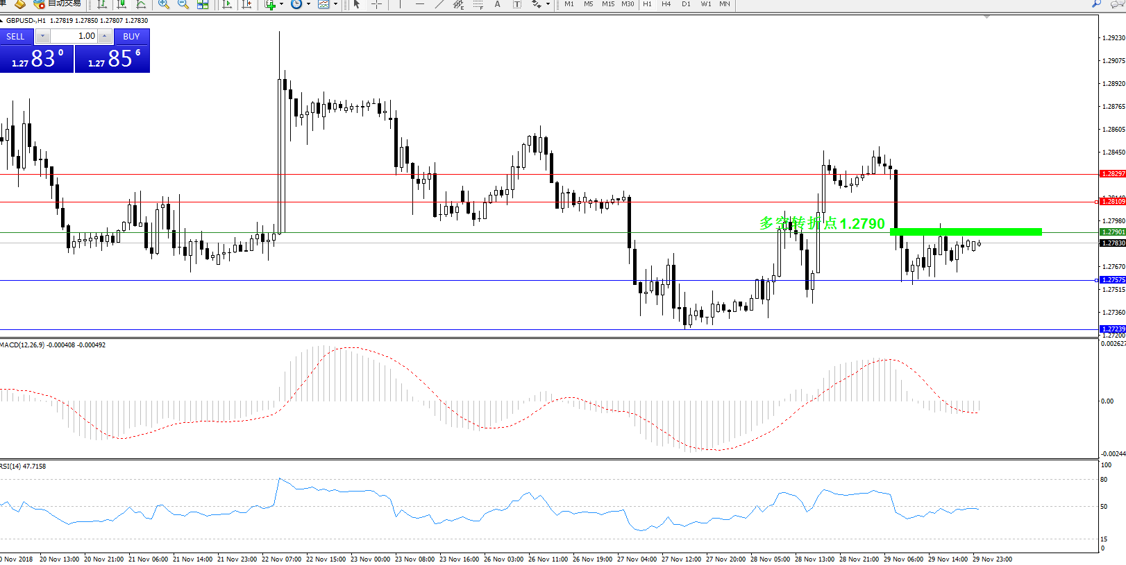 备选策略:维持1.2790下方震荡可空单进场,目标1.2723。